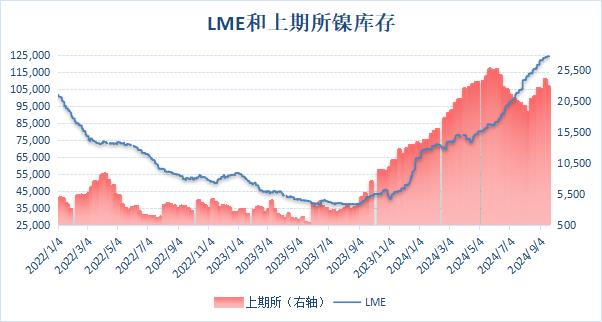 上期所公布的數據顯示,9月20日當周,滬鎳庫存有所回落,周度庫存減少4.87%至22,845噸。